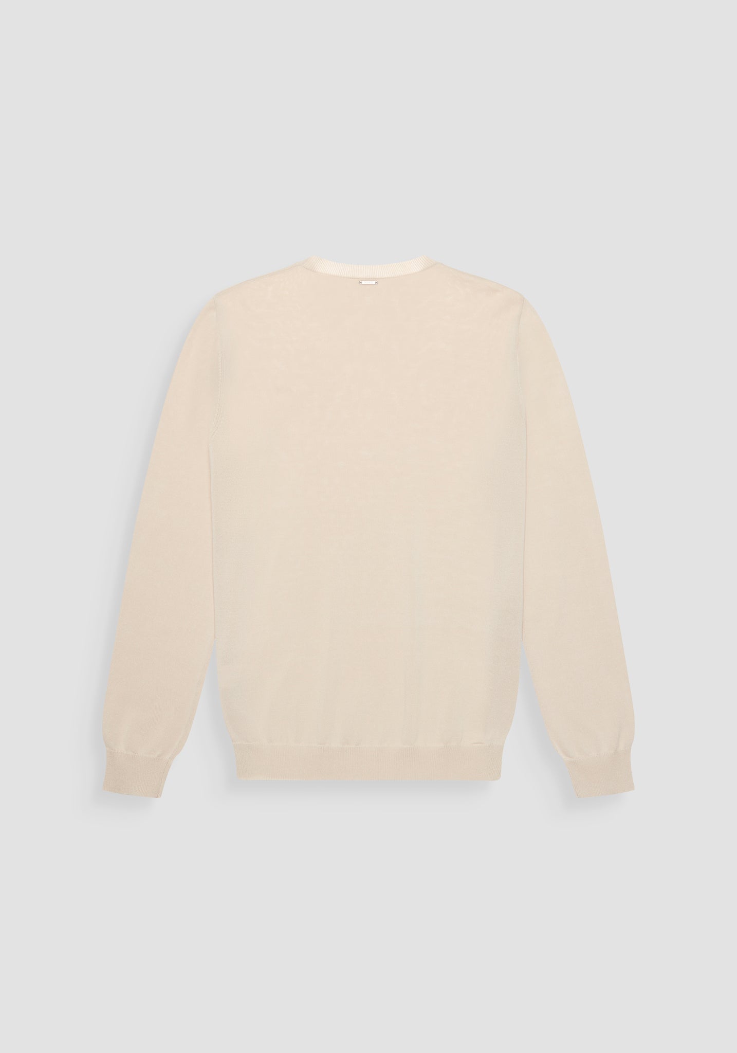 Esta camiseta de cuello redondo de manga larga, de corte regular fit, está confeccionada íntegramente con un suave tejido de mezcla de algodón. La particularidad de este modelo es el monograma aplicado en el pecho. El cuello, el bajo y los puños son acanalados, mientras que en la parte posterior del cuello lleva aplicada una placa con el logotipo metálico.