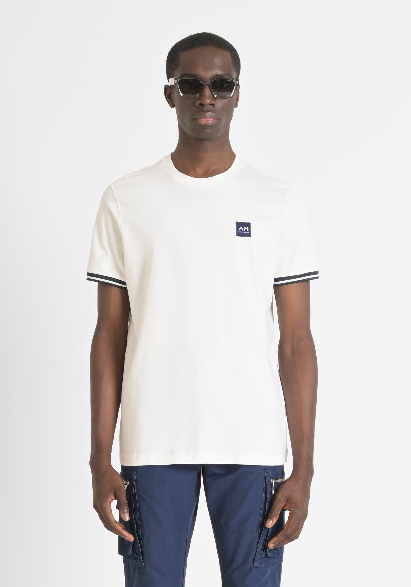 T SHIRT REGULAR FIT DE PUNTO DE ALGODÓN 100 % CON PARCHE CON EL LOGOTIPO Y DETALLES EN CONTRASTE