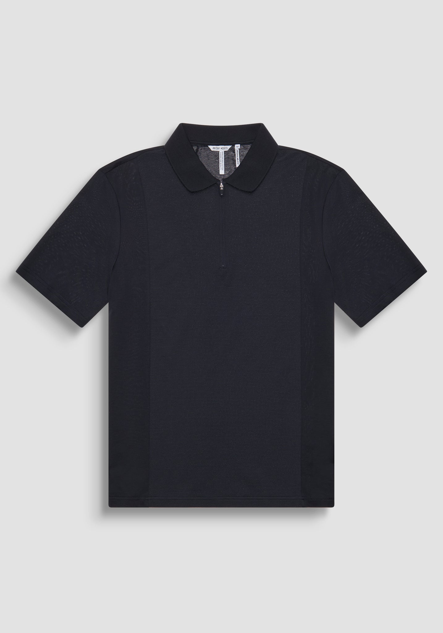 Actualiza tu estilo con este polo firmado por Antony Morato confeccionado íntegramente en cómodo punto de algodón. El diseño juega con las texturas y los matices, añadiendo un toque original y refinado a la prenda. El cierre de cremallera, práctico y funcional, las aberturas laterales en la parte inferior y el logotipo en relieve en la parte posterior del cuello completan el modelo, perfecto para un estilo informal pero cuidado.