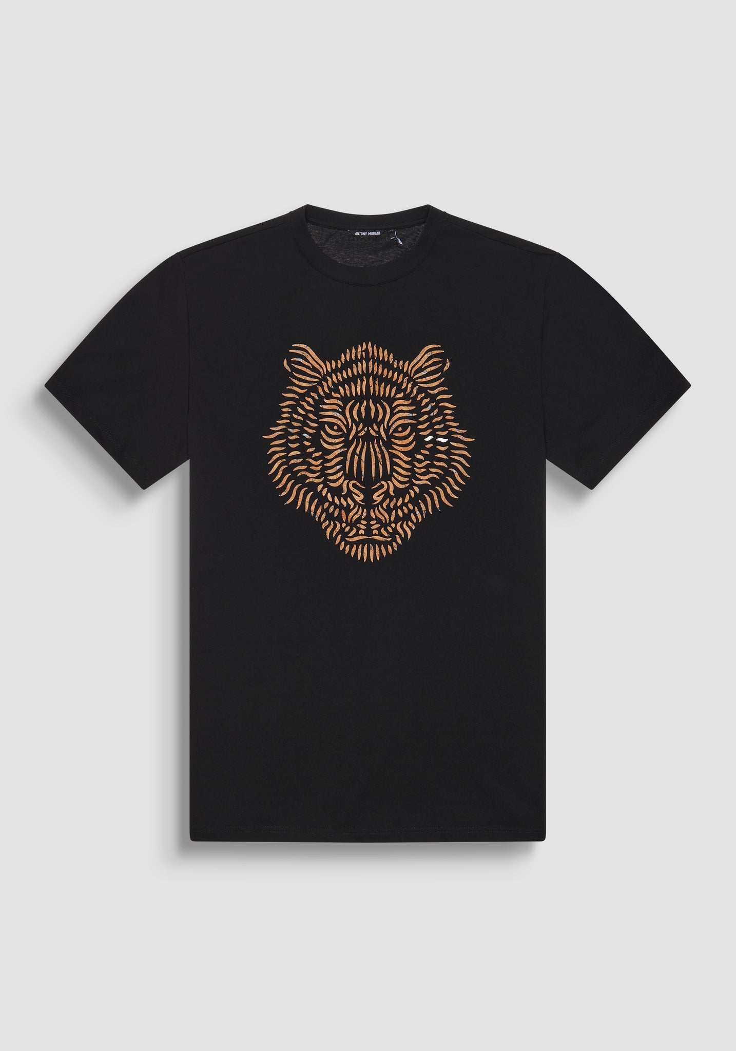Esta camiseta de cuello redondo y corte recto de algodón presenta el icónico estampado de tigre de Antony Morato. El efecto del estampado en dos colores le da un aspecto desgastado muy especial. Logotipo de Antony Morato estampado en el cuello redondo en la parte posterior.