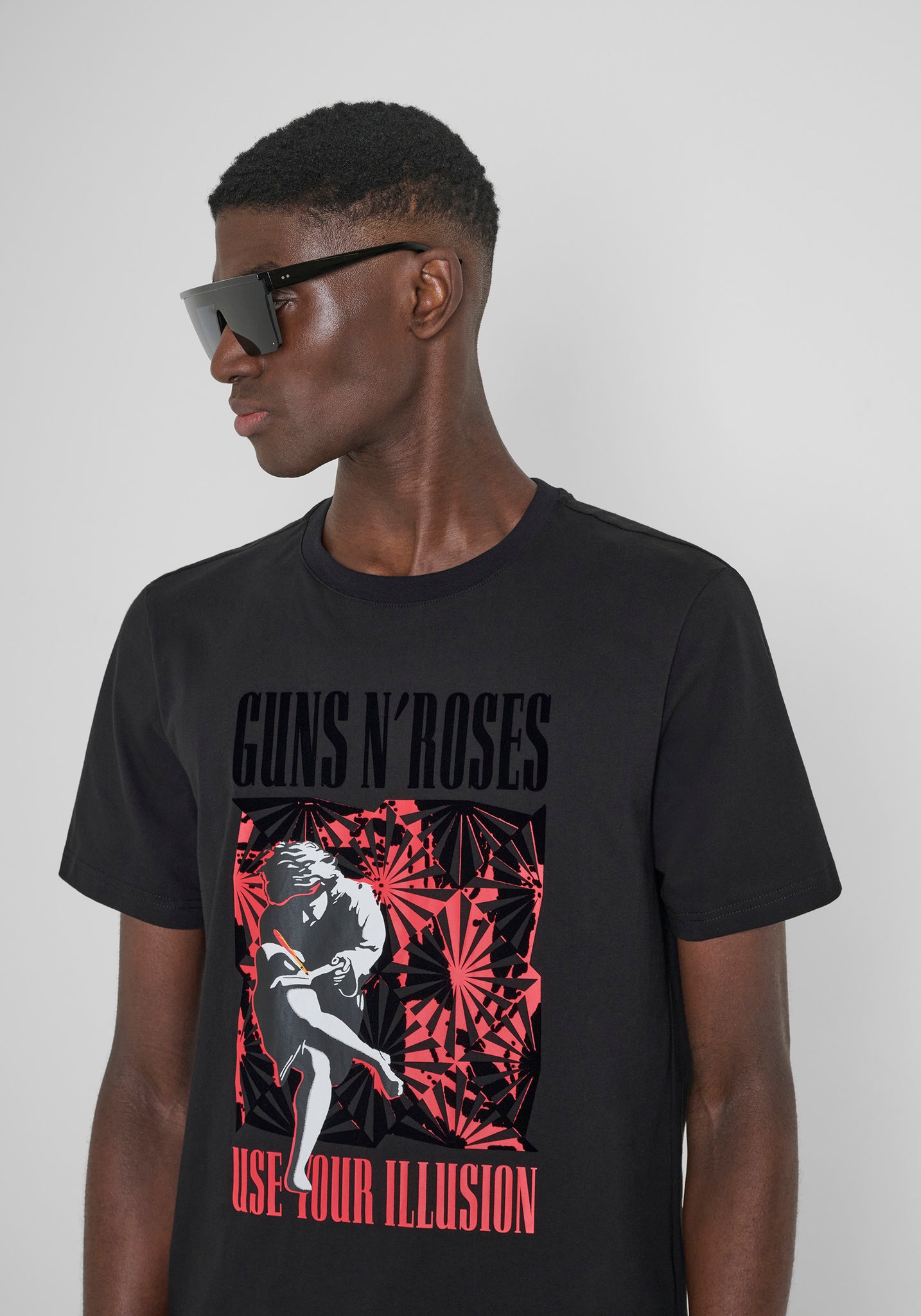 Añade un toque roquero a tus looks con esta camiseta de cuello redondo y suave de punto de algodón de Antony Morato. Con un corte regular fit, la prenda presenta un maxiestampado inspirado en la icónica banda Guns N' Roses que no te dejará pasar desapercibido.