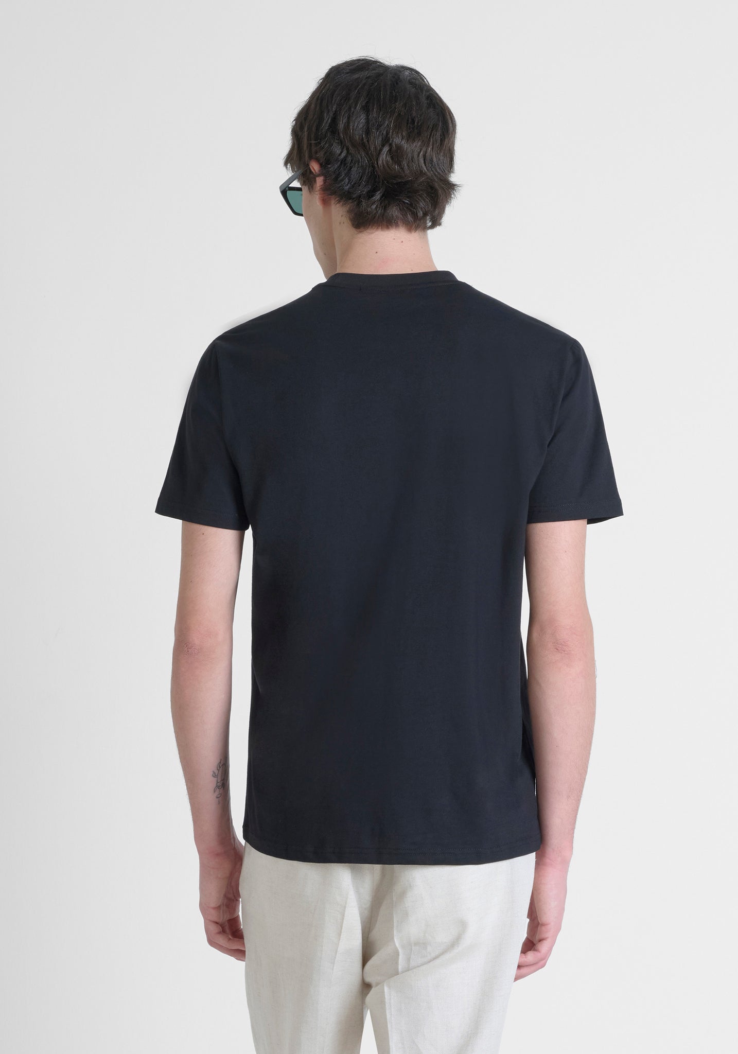 T-SHIRT REGULAR FIT DE PUNTO DE ALGODÓN PURO DE COLOR LISO CON LOGOTIPO EN RELIEVE TONO SOBRE TONO