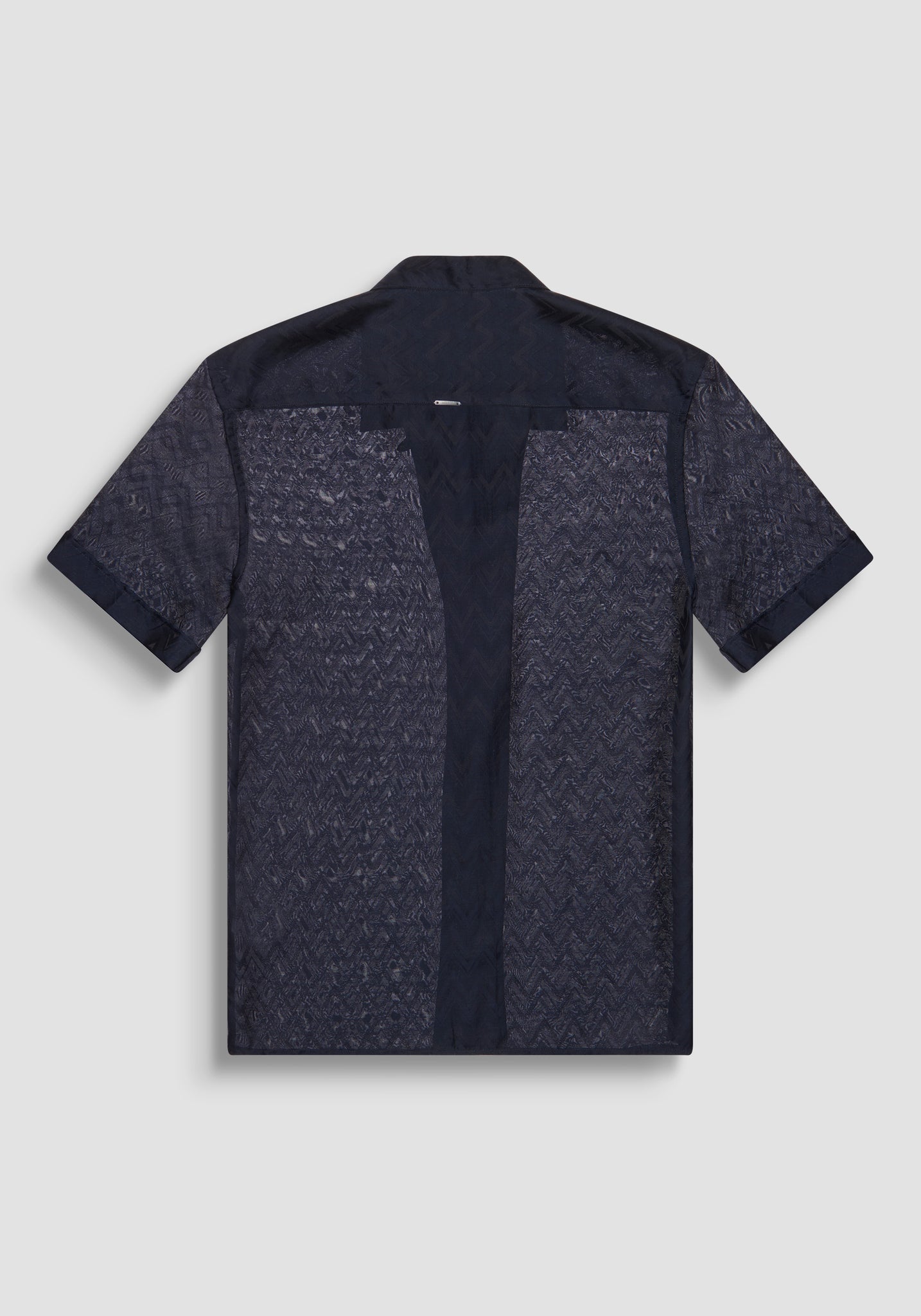 Descubre esta camisa de manga corta de Antony Morato con cuello cubano. El estilo se ve enriquecido gracias al estampado geométrico tono sobre tono, que ofrece un diseño sofisticado y moderno. El corte recto regular fit garantiza un aspecto holgado. Los acabados en el borde de las mangas, el panel central reforzado y la placa con el logotipo en la espalda crean un discreto contraste.